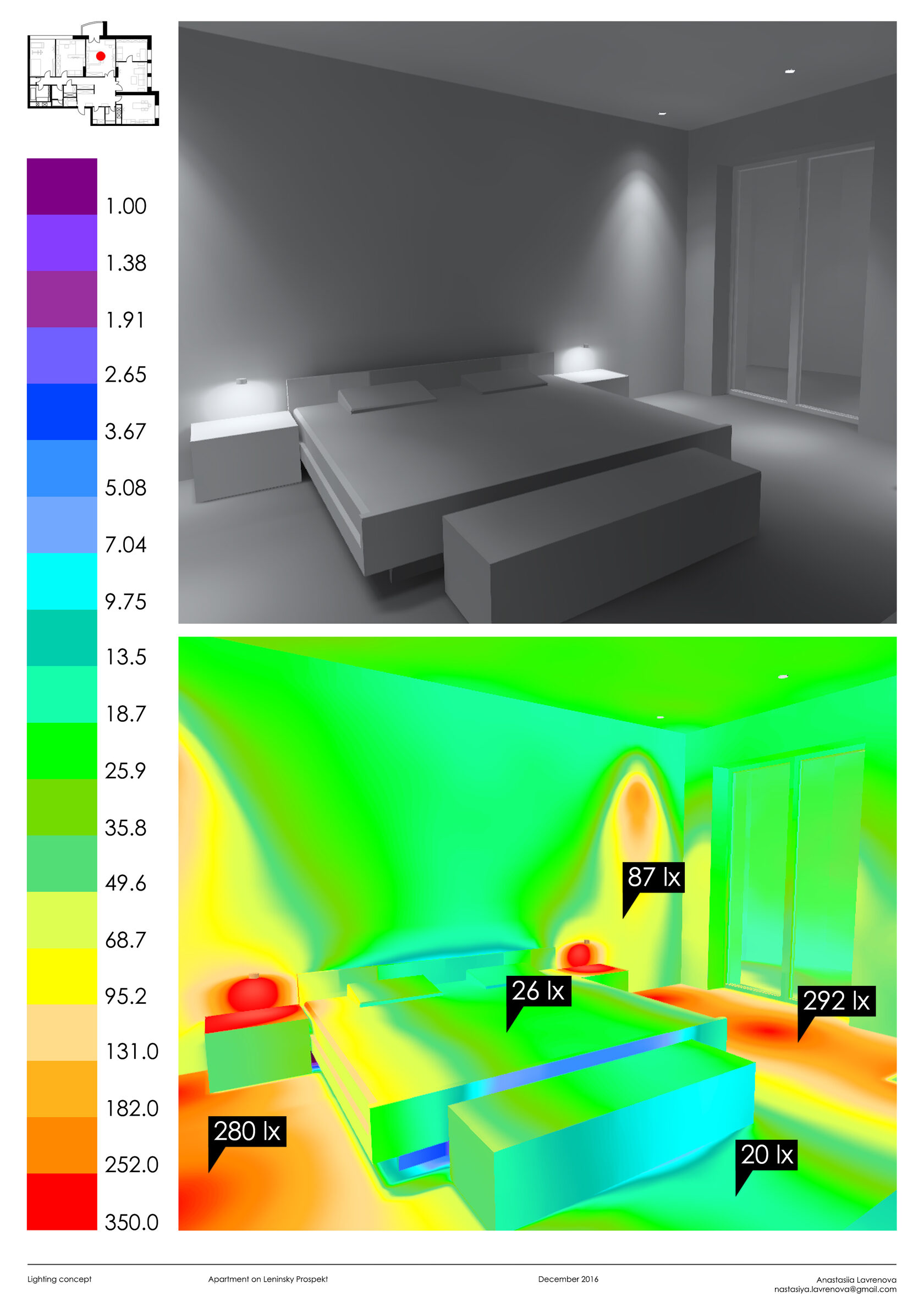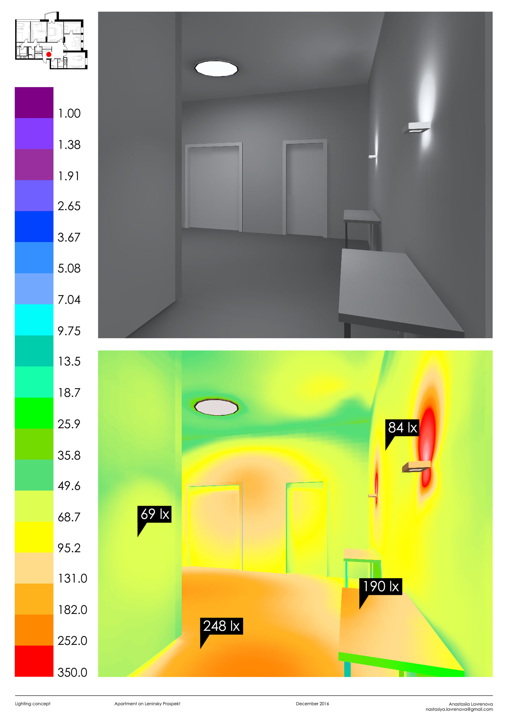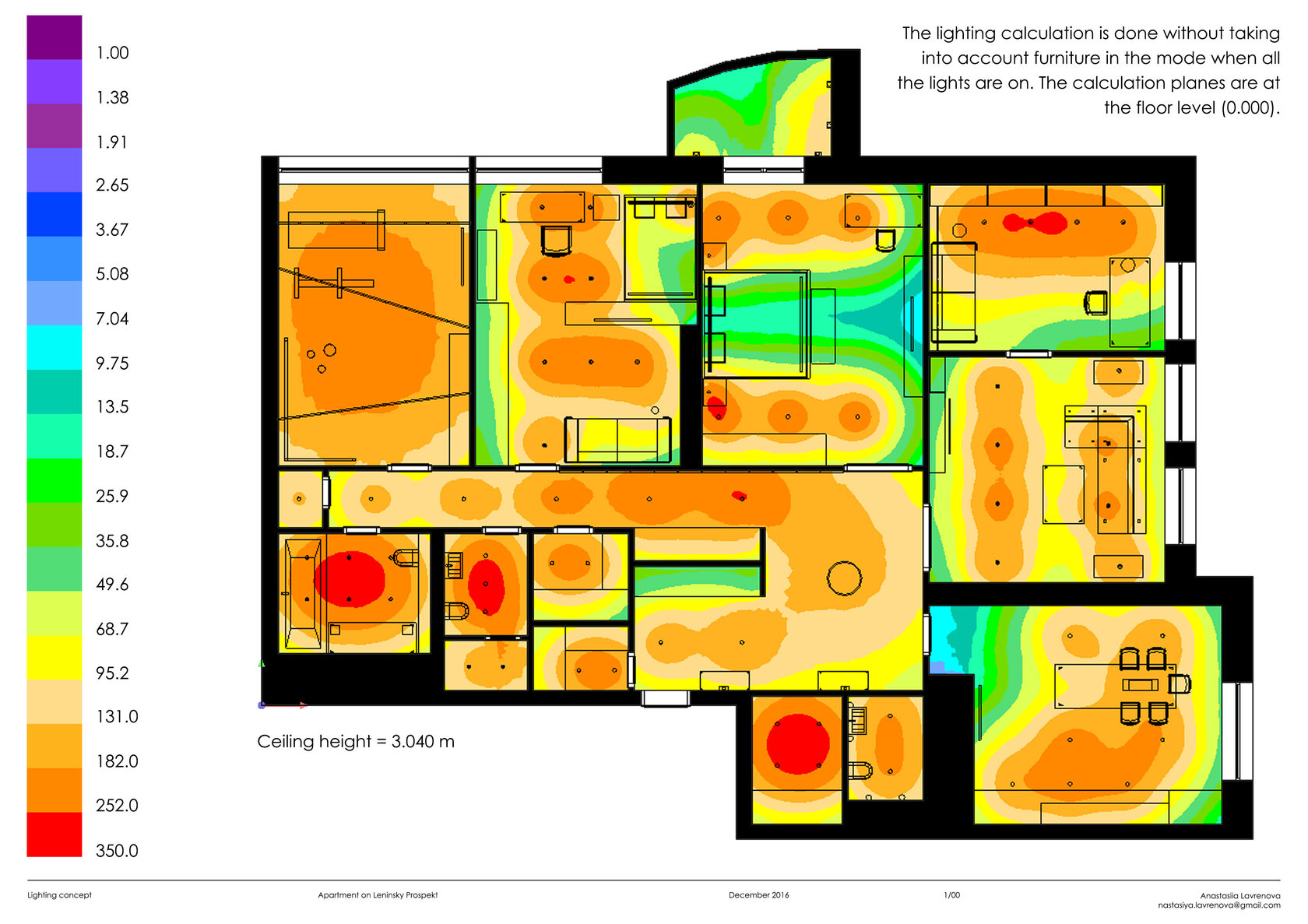 The design and visualizations of the apartment were still under development when I received the plans, so the main task was to develop, in addition to architectural light, a decorative one that would suit any color scheme and style of the premises. Vibia and Flos factories were used here as decorative lighting.