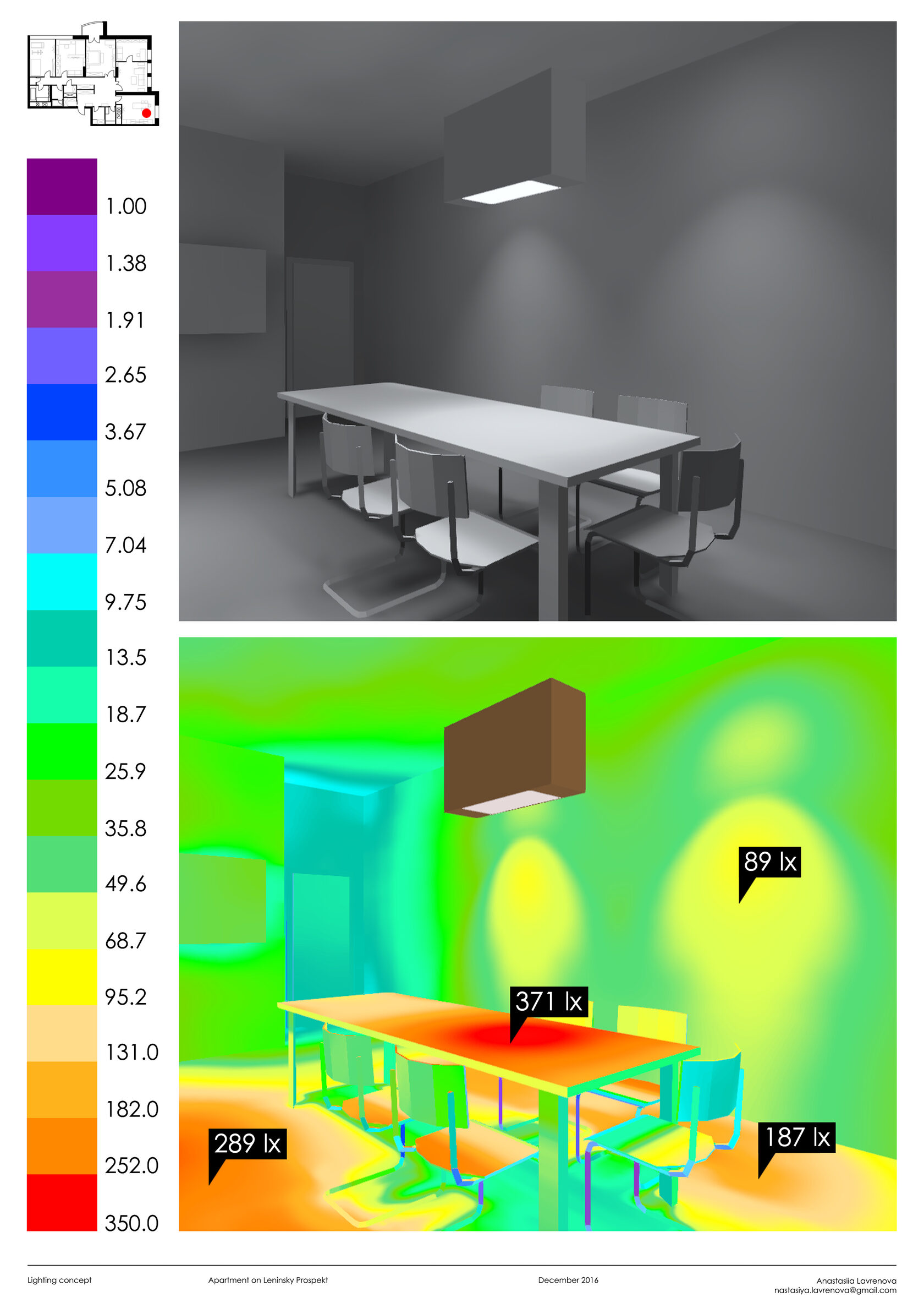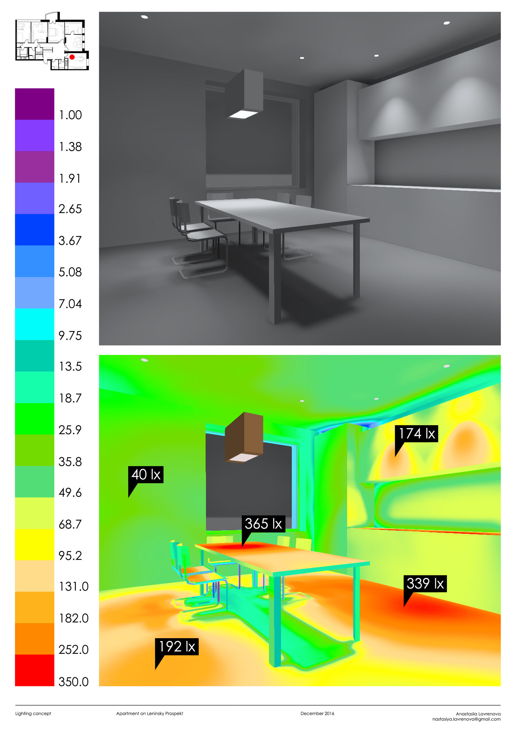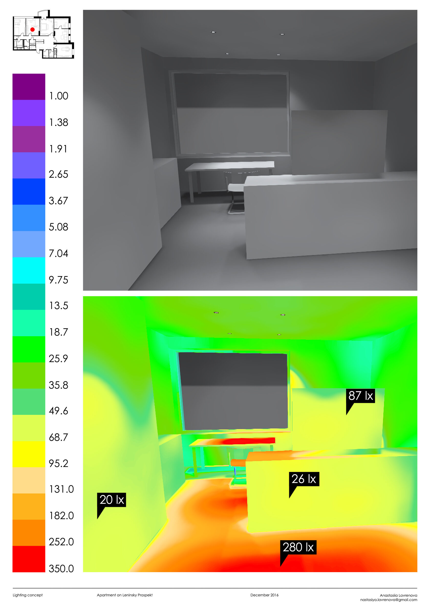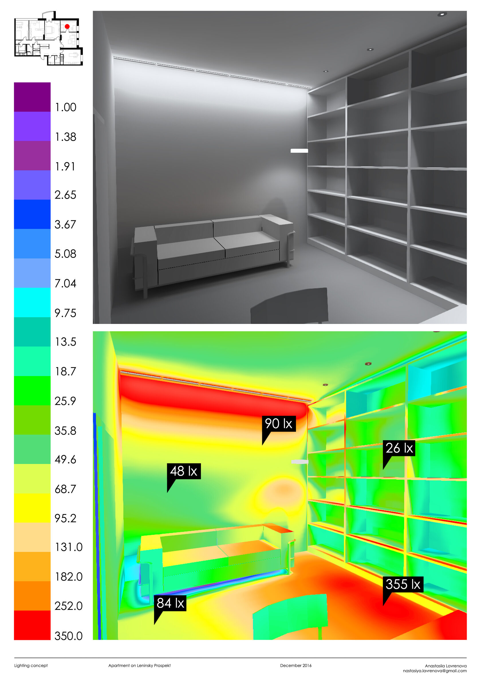 The design and visualizations of the apartment were still under development when I received the plans, so the main task was to develop, in addition to architectural light, a decorative one that would suit any color scheme and style of the premises. Vibia and Flos factories were used here as decorative lighting.